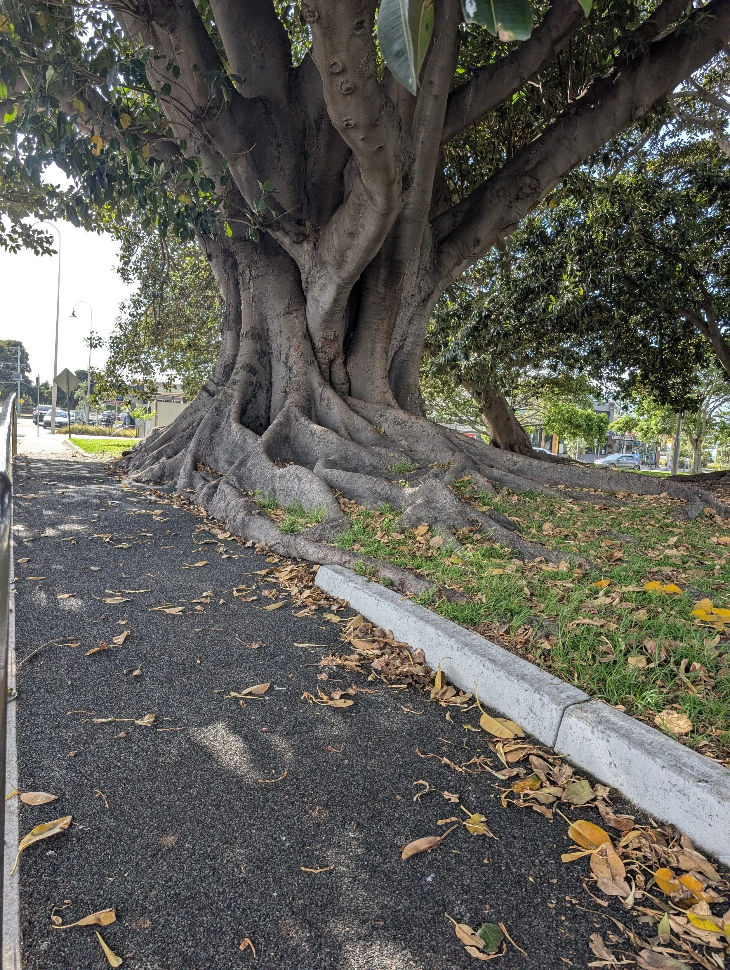 Goals To install a path that is able to withstand the growth and movement of a large adjacent fig tree